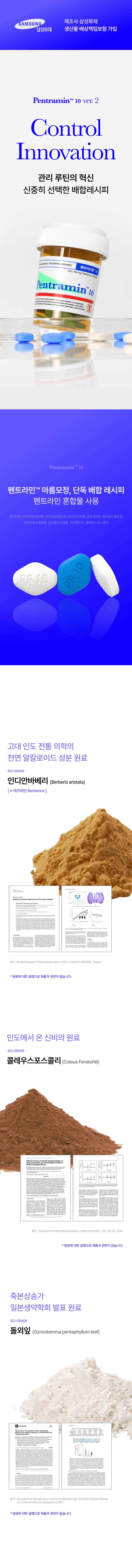 인디안바베리열매 추출분말(베르베린5%)(인디안바베리열매,덱스트린/인도산), 비타민B12(혼합제제)0.1WSN(말토덱스트린,구연산나트륨,구연산,비타민B12), 펜트라민 혼합분말(비타민B2, 비타민B1염산염, 비타민6염산염, 알긴산나트륨, 글루코만난, 돌외잎추출분말(국내산), 흰강낭콩추출분말(미국산), 발효율피추출물, 브로멜라인, 콜레우스포스콜리), 포도당 |